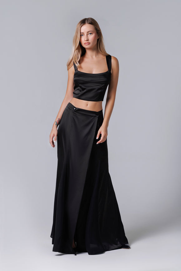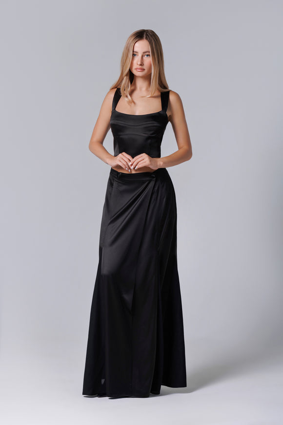 Fusta lunga din satin neagră