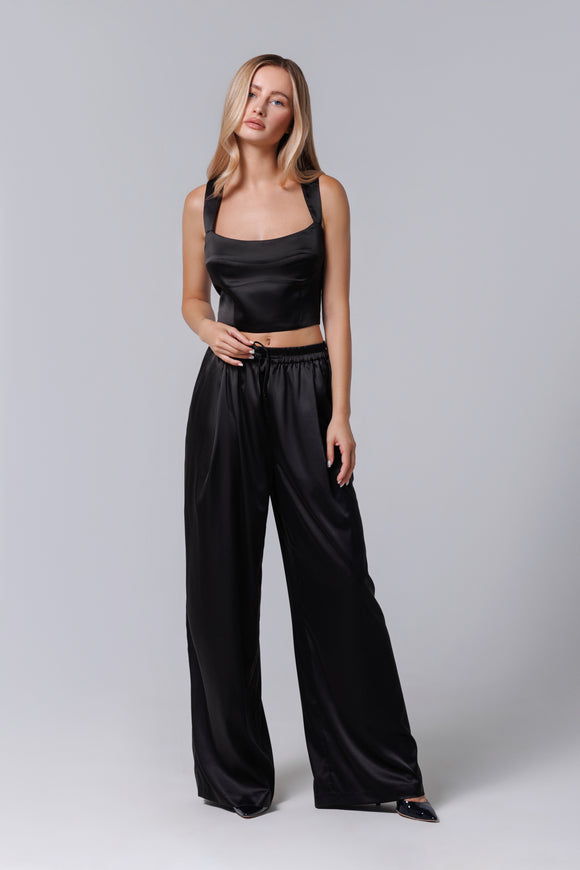 Pantaloni Clasici din satin negru