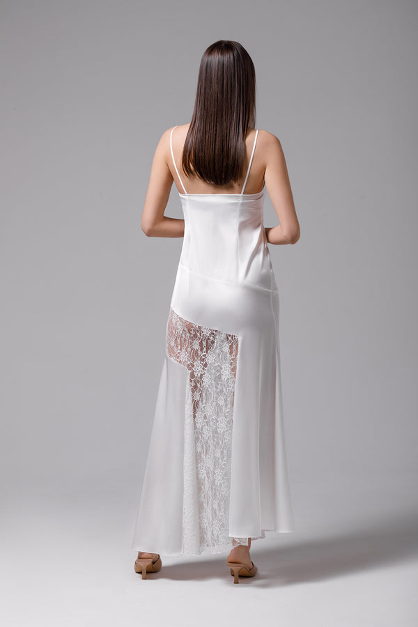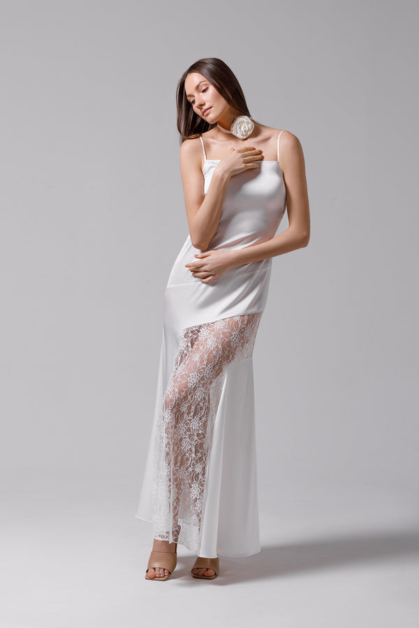 Rochie lungă Slip din Satin și Dantelă Ivory
