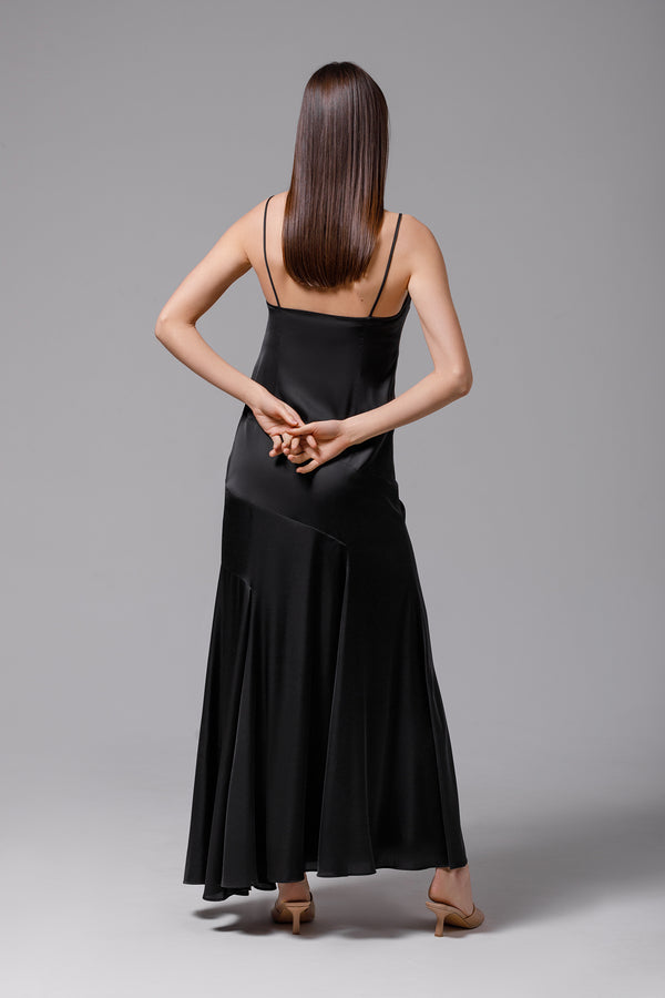 Satin de lux, tăiată în diagonală, care se așează frumos pe corpul tău.