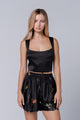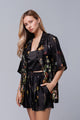 Savurați eleganța și confortul suprem cu pantalonii noștri scurți negri cu imprimeu floralde tip tap, confecționați din mătase de cea mai bună calitate. Aceștia sunt dotați cu buzunare utile și prezintă o talie elastică, special concepută pentru a contura și a complimenta forma corpului. Completați-vă garderoba de acasă cu un set coordonat, asociind pantalonii scurți cu una din cămășile noastre ,o bustieră elegantă sau un top asortat. Ușori și moi ca o mângâiere, acești pantaloni sunt perfecți pentru relaxare nocturnă sau pentru a vă plimba confortabil acasă.