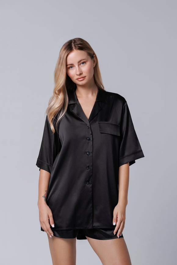Cămașă scurtă neagră din satin