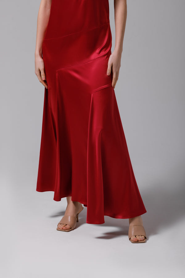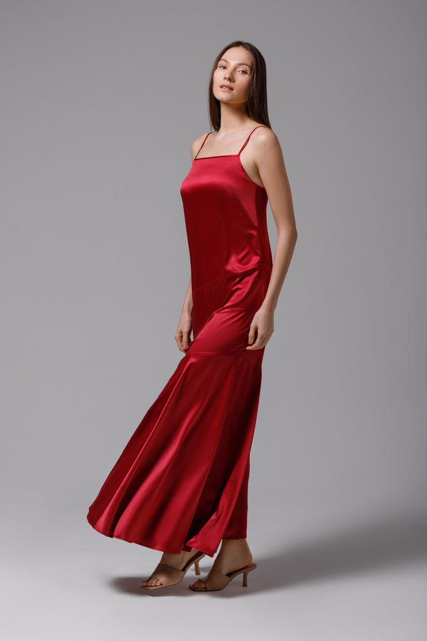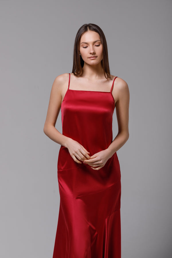 Rochie lungă din satin burgundy
