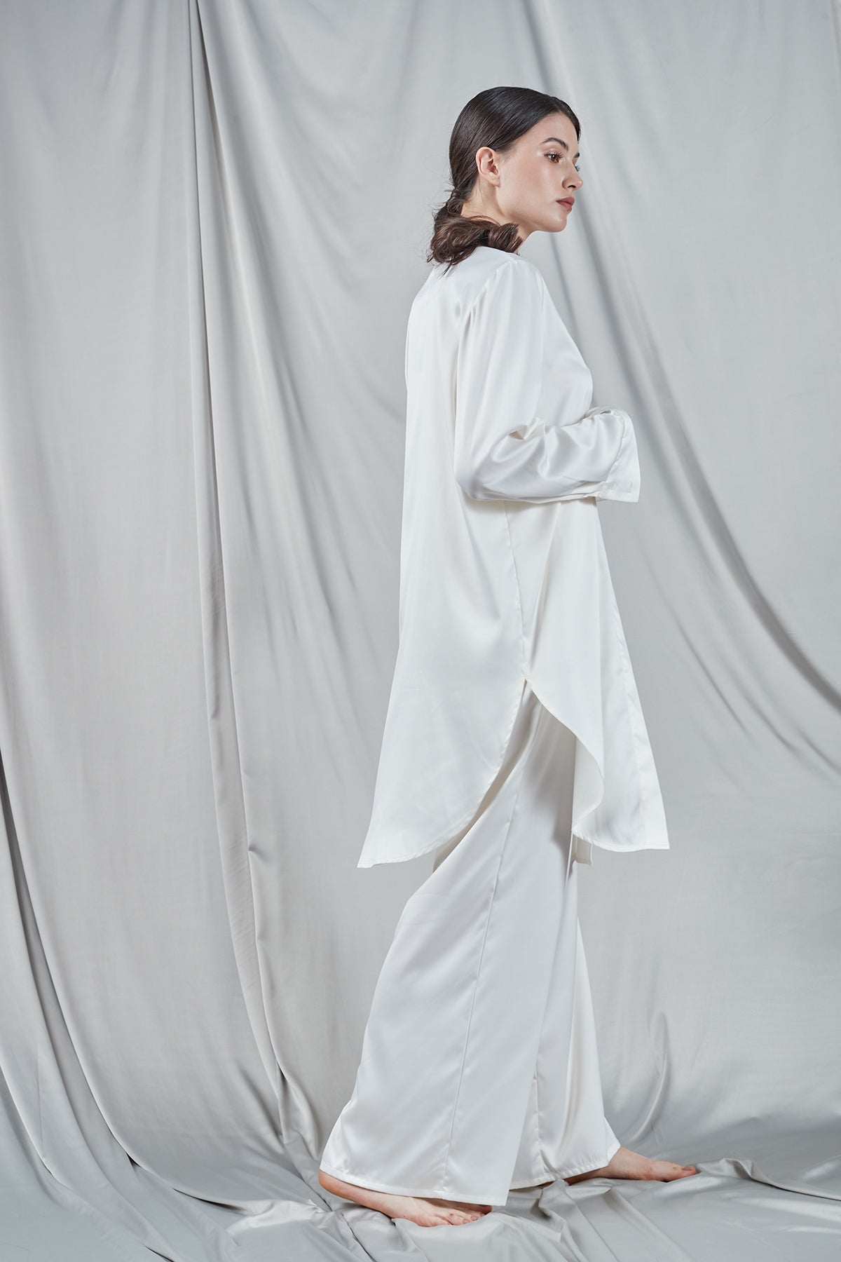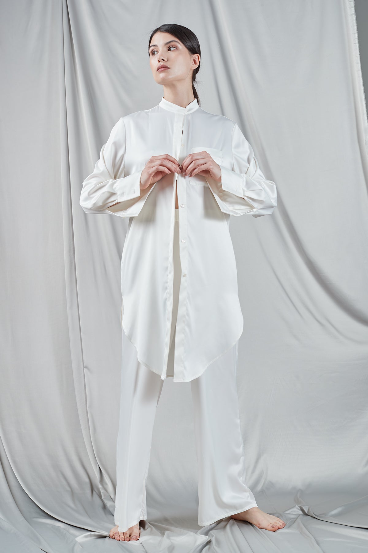 Cămașă lungă din satin ivory