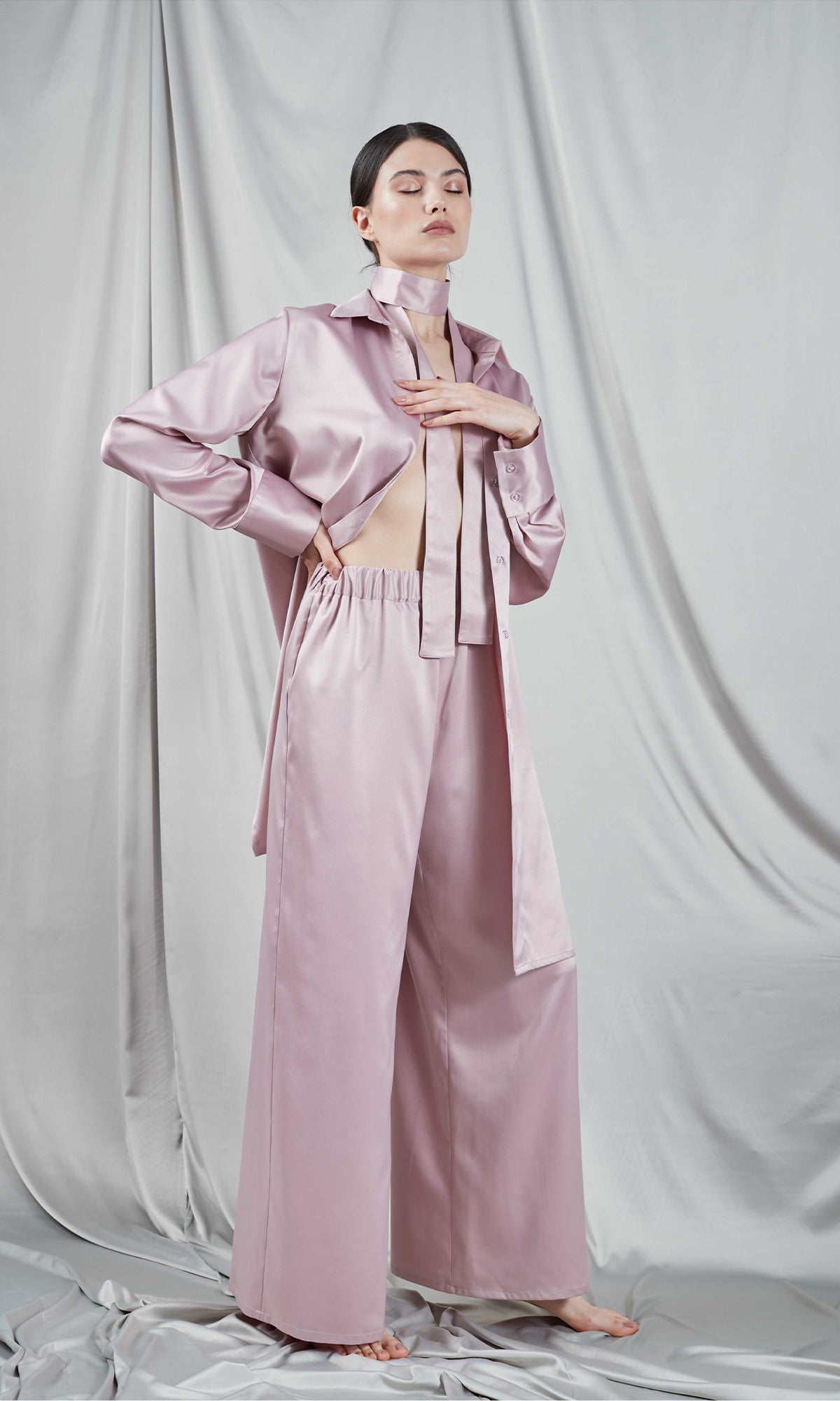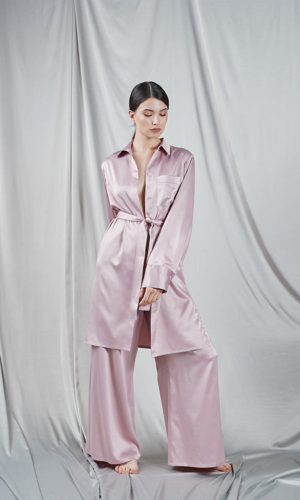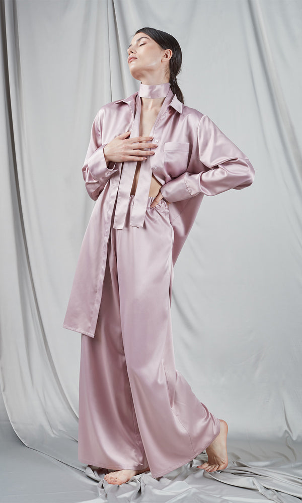 Îmbrăcați-vă în confortul suprem cu pantalonii noștri Palazzo Roz, confecționați din cea mai fin satin, atât de moale încât veți dori să petreceți fiecare moment în ei. Echipați cu o talie elastică pentru o potrivire perfectă, acești pantaloni sunt definiția confortului și stilului. Asortați-i cu unul din topurile noastre pentru un look casual-chic sau completați ansamblul cu una din bustierele sau halatele noastre coordonate, pentru o ținută încântătoare și sofisticată.