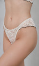 Chiloți tanga, definiția luxului discret, fiind realizați integral dintr-o dantelă fină cu modele florale ce oferă o estetică încântătoare și un finisaj de înaltă calitate. Perfect pentru a adăuga o notă de cochetărie garderobei tale, acest slip este ideal pentru completarea unui set cu sutienul triunghiular asortat. Dantela în nuanțe de aur captează lumina și adaugă un plus de strălucire, promițând nu doar confortul, dar și un aspect care nu va trece neobservat.